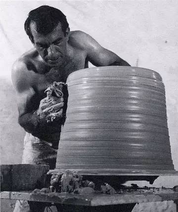 我们回到艺术。1954年,美国有个陶艺家叫彼得·沃克斯。他学过中国的定窑磁州窑,也学过日本的,他的拉坯技术很好,他手工拉坯能拉得很大。说真心话,这么大我是拉不出的,虽然我是职业的陶艺家,但我也不是以拉坯为主要创作的。至少说明他的技术是很好的、很传统的。