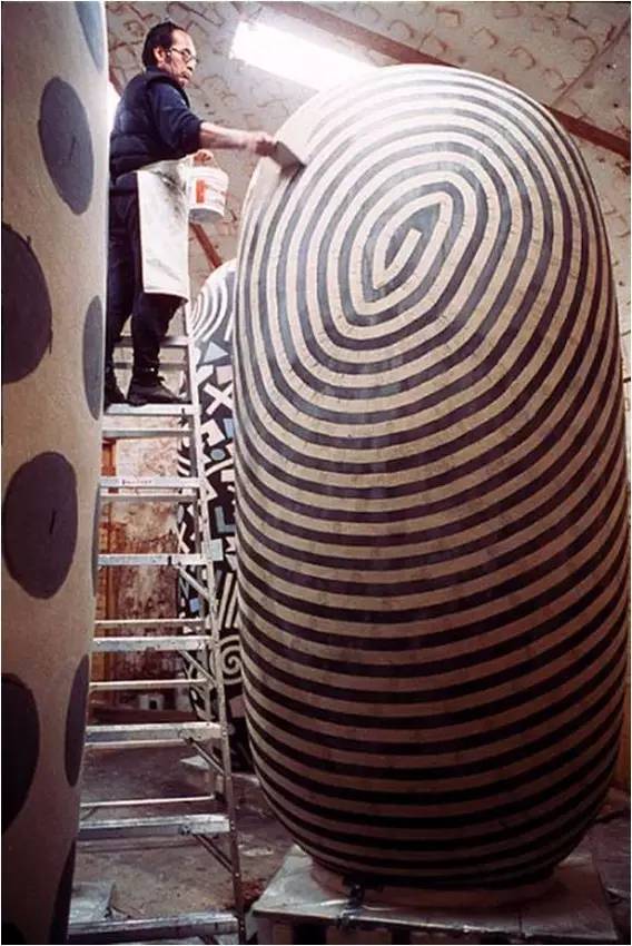 当然,在他的同时代还有一些重要的艺术家,琼克尼克、金子润,日本人到美国做大型的作品,这个作品有多大我们通过体量可以看得到,他是怎么烧成呢,做一个窑烧窑,完成后就拆掉窑,当然它的价格非常贵,可能是目前在世最贵的陶艺家。