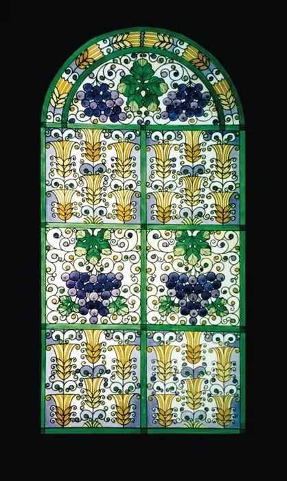20 世纪90 年代,经第八届全国人大教科文卫委员会委员傅铁山主教要求,为北京天主教教堂(南堂)设计以葡萄与麦穗图案为主题的彩色玻璃窗