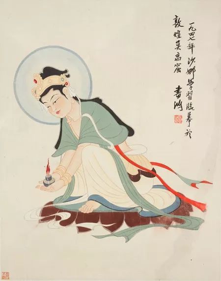 我在法国生活时还是童年时期,但正是父亲在塞纳河畔偶然得到的一本敦煌图录促成他以及后来我与敦煌的不解之缘。在敦煌,包括后来在美国的经历,给我打下了非常重要的“童子功”基础,使我对敦煌壁画色调的问题、历代不同的风格都有了感受。1945年抗日战争胜利以后,国民政府要从重庆搬回到南京,敦煌艺术研究所面临被取消的危险。我爸爸就去重庆呼吁不能取消。通过他的努力,后来敦煌研究所成功保留了下来,还得到了不少经费资助。在那个时候,为了呼吁国民政府对敦煌予以重视和支持,父亲在兰州搞了一个妇女展,把我临摹的东西也合在里面了。我前一段在兰州,好多人又向我提起这个事,可见它的影响还是比较大的。