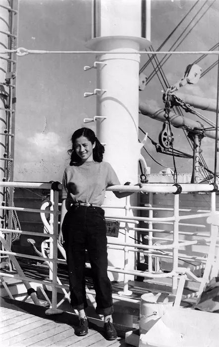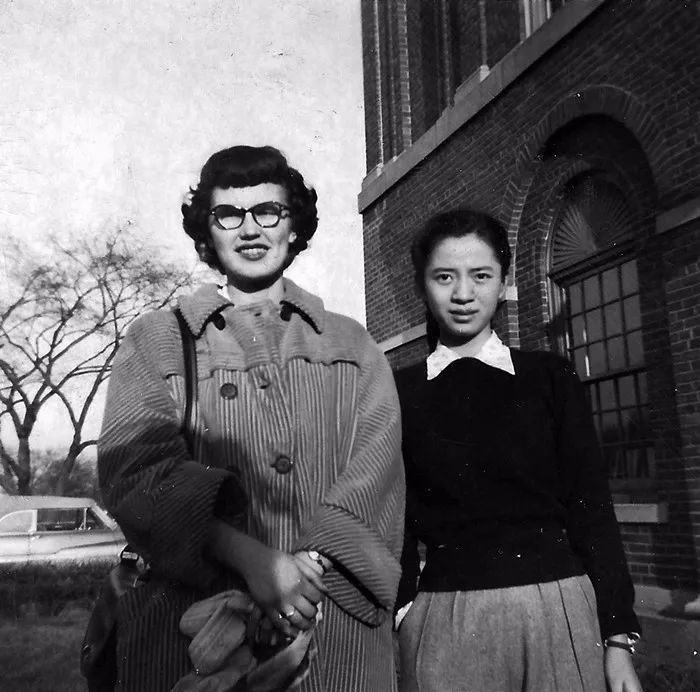 1948 年在美国波士顿“波士顿美术博物馆美术学院”上学时在校门口和同学合影
