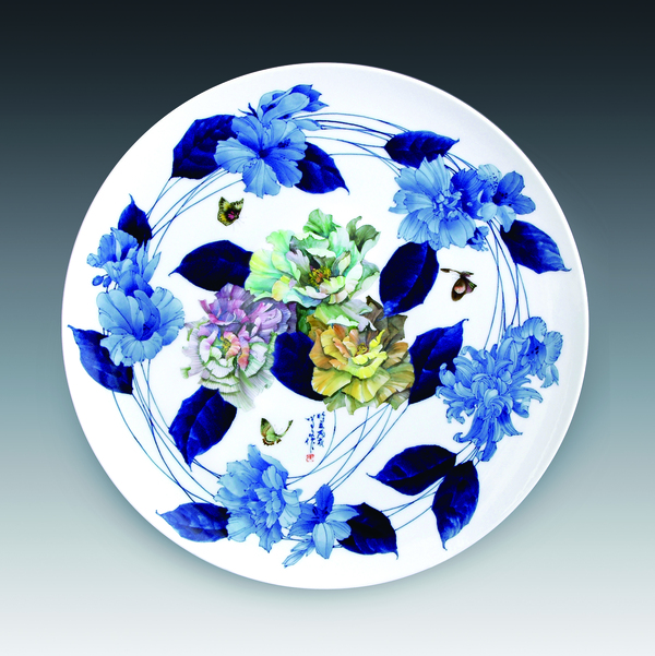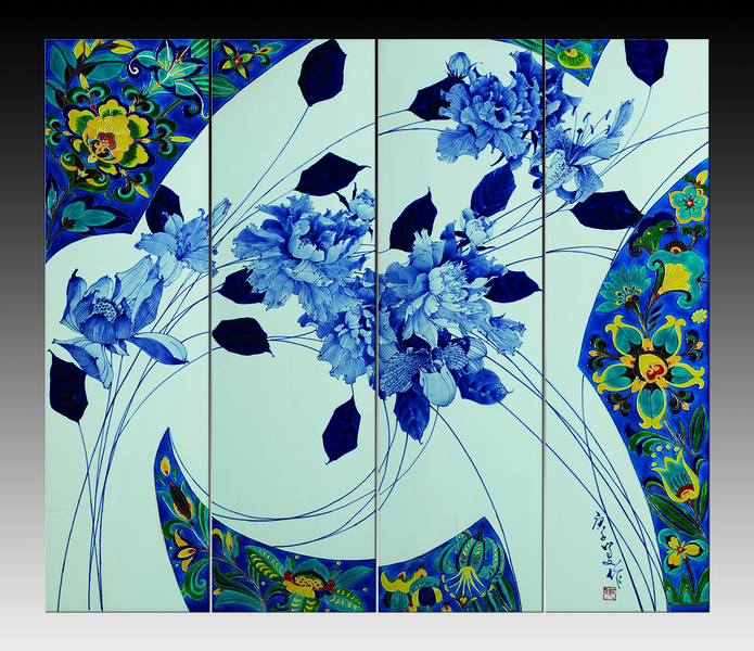 对话·珐华彩青花综合彩瓷板 / 张学文作