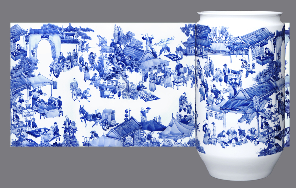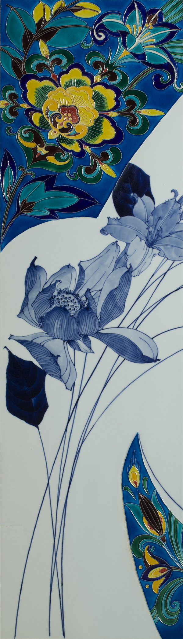 对话·珐华彩青花综合彩瓷板局部 / 张学文作