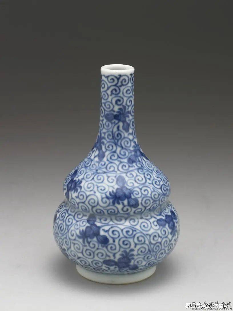 高14.5厘米,底径6.8厘米,口径3厘米。圆口,短直颈,鼓肩,硕腹下敛,平底内凹成足。外型有如上下压缩之梅瓶,附平顶圆盖。外壁以釉下钴蓝绘饰纹样,肩部绘波涛纹一圈,腹外壁等距饰团花纹,近底处蕉叶纹。器外壁所绘波涛、蕉叶,多是以重複且简单样式一再重複而成,但团花的设计则别出心裁,其以一花居中,上下左右绘一朵同类花,枝叶蔓生隙地,五花皆作正面盛开,但外围的四朵花则略成椭圆,宛如以稍侧的视角绘写盛开花,使团花周围产生微微的空间感,再配合硕弧的外壁形式,更凸显了团花纹中央朵花的地位。盖顶面饰折枝桃实,盖侧壁如意云头纹。底外釉下青花书“大清雍正年制”双行六字楷款,外加双圈。