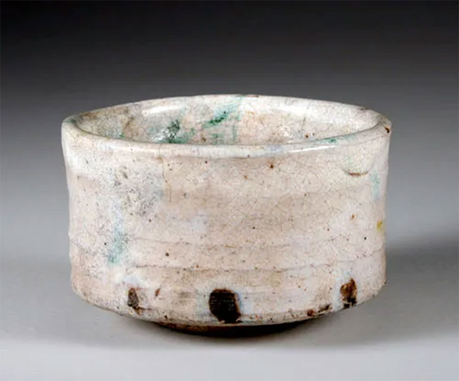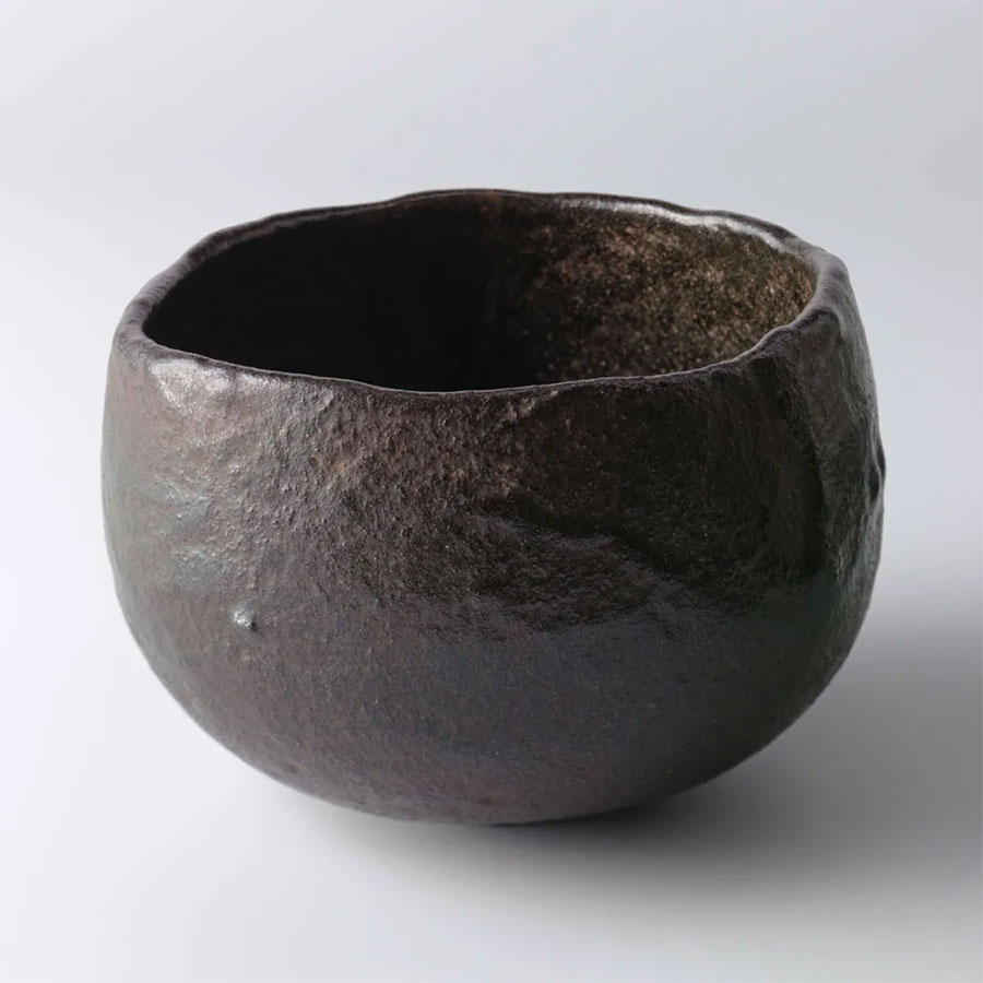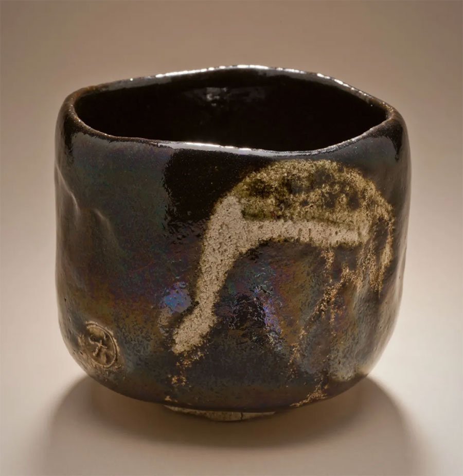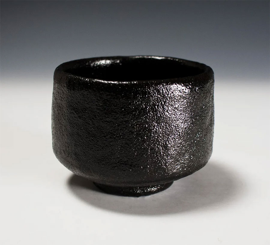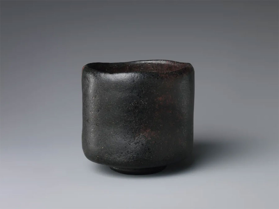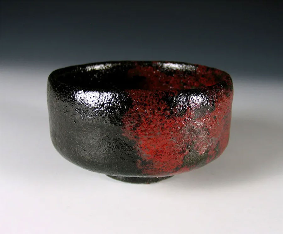 “我可以请你做出武士用粗糙的手拿也不会显得粗俗,女人用纤纤玉指拿也不会显得羸弱的茶碗吗?”茶圣利休手绘茶碗草图,找瓦工长次郎制作,不使用传统辘轳,以手塑坯、辅以刀削,因而器形呈现粗糙质地、不规则筒状矮胖柔和之造型,于京都造窑,烧出黑色及红色的茶碗。
