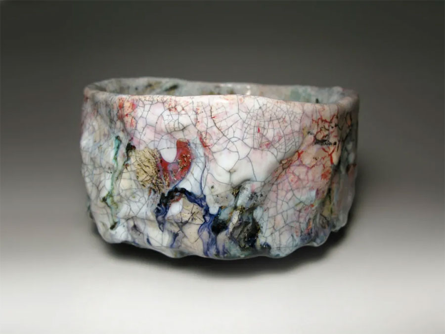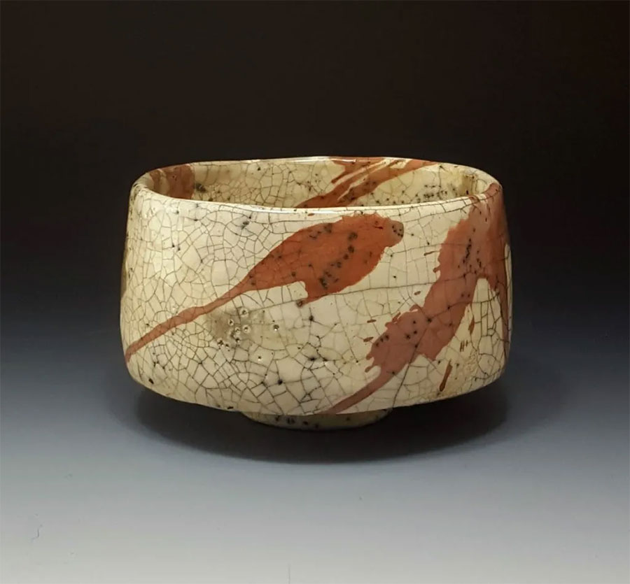 烧成的那一刻,迅速把火红的作品从窑中取出,加上不同种类的燃烧物,如:树叶、木屑、海草、果壳等。其中,急速升降温的烧制过程,是乐烧的一种特有方式。