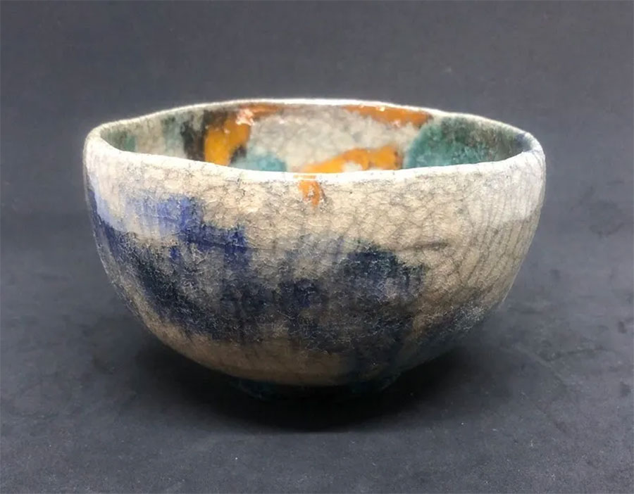 乐烧源自中国色彩鲜豔的“素三彩”,是长次郎的中国籍父亲在归化日本后将此烧制技巧传到日本,再由长次郎在茶圣千利休的指导下转换成乐烧,茶道文化自乐茶碗的出现而大放异彩,也是日本陶艺史上划时代的创作。