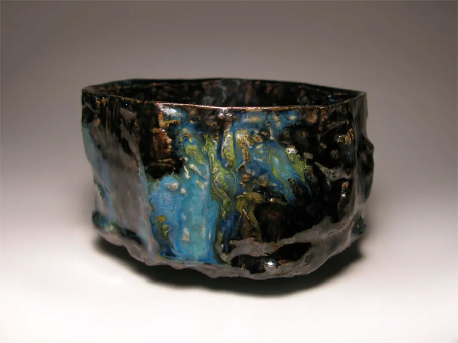 另外採低温烧制,表层釉药熔解,釉表面会出现大量气泡,表现出岩石质感,温度未完全传导至碗心内层,陶土内部仍含有空气;和其他陶器相比,保温性较佳,轻敲时也能感受到其他陶器所没有的质地及柔和的声音。