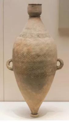 小口尖底瓶。新石器时代,出土于西安市临潼区姜寨,现藏于陕西历史博物馆。是仰韶文化半坡类型的典型水器。陶瓷容器也是玻璃器皿在古代东方的替代品