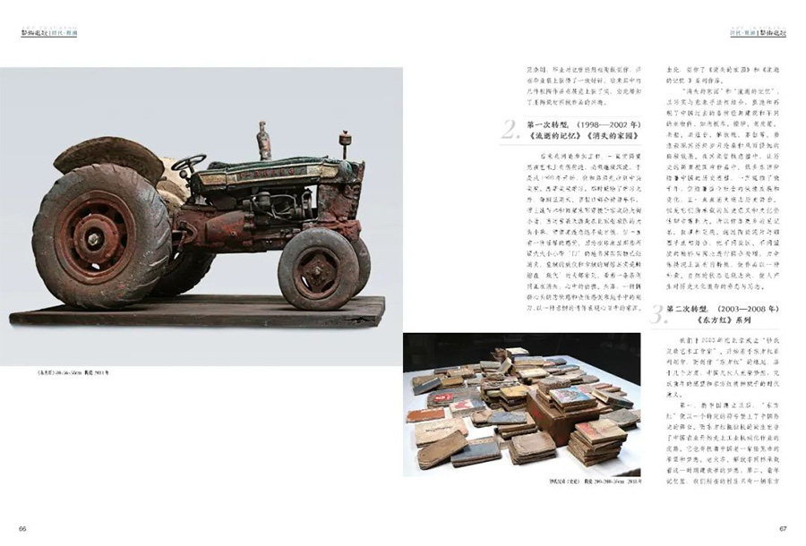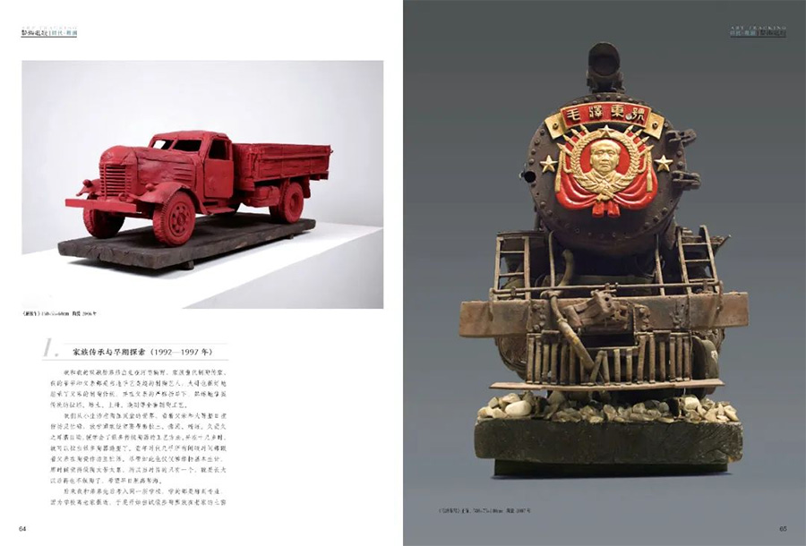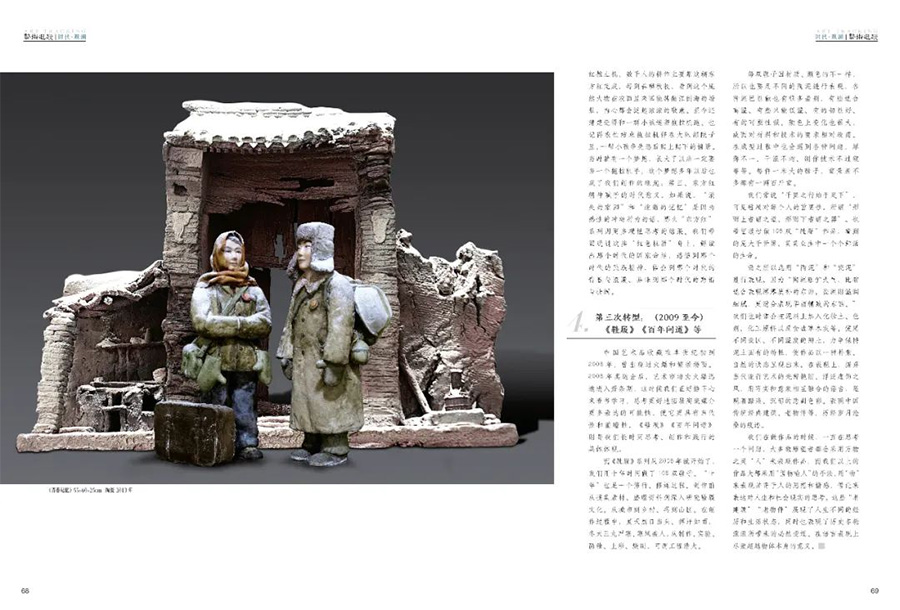 “消失的家园”和“流逝的记忆”,以写实与意象手法相结合,塑造和再现了中国过去的各种经典建筑和不同的老物件,如老板车、辘轳、老皮箱、老船、老灶台、解放鞋、茶缸等。着意表现其历经岁月沧桑和风雨侵蚀的斑驳效果。在其象征性意蕴中,让历史的画面凝固在作品中。很多东西伴随着中国的历史进程,一直延续了数千年,但随着当今社会的快速发展和变化,正一点点消失退出历史舞台。但是它们所承载的历史意义和文化价值却非常巨大。所以作品更多的是记录、叙事和呈现。通过陶瓷泥片与雕塑手法相结合,把不同瓷区、不同温度的釉料与陶土进行糅合处理,力争保持泥土固有的特性,使作品以一种朴素、自然的状态呈现出来,使人产生对历史文化遗存的眷恋与思念。