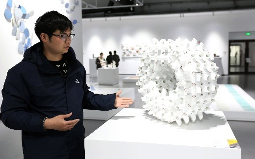 3月1日,就职于景德镇陶瓷大学的青年教师王登介绍获奖作品《轮回的记忆》,作品采用模具翻模的制作方法,继承中国传统造物的系统化与模件化原则,用方底、圆柱等多种形态不一的材料,塑造成一个多维的艺术造型圆形,是对中国经典美学“精而便、简而裁”的体现。整个作品寓意天圆地方,气象万千,有效地把中国传统文化“天人合一”的思想,汇聚在陶瓷创作变换之中,有效法自然,“随缘”之意。