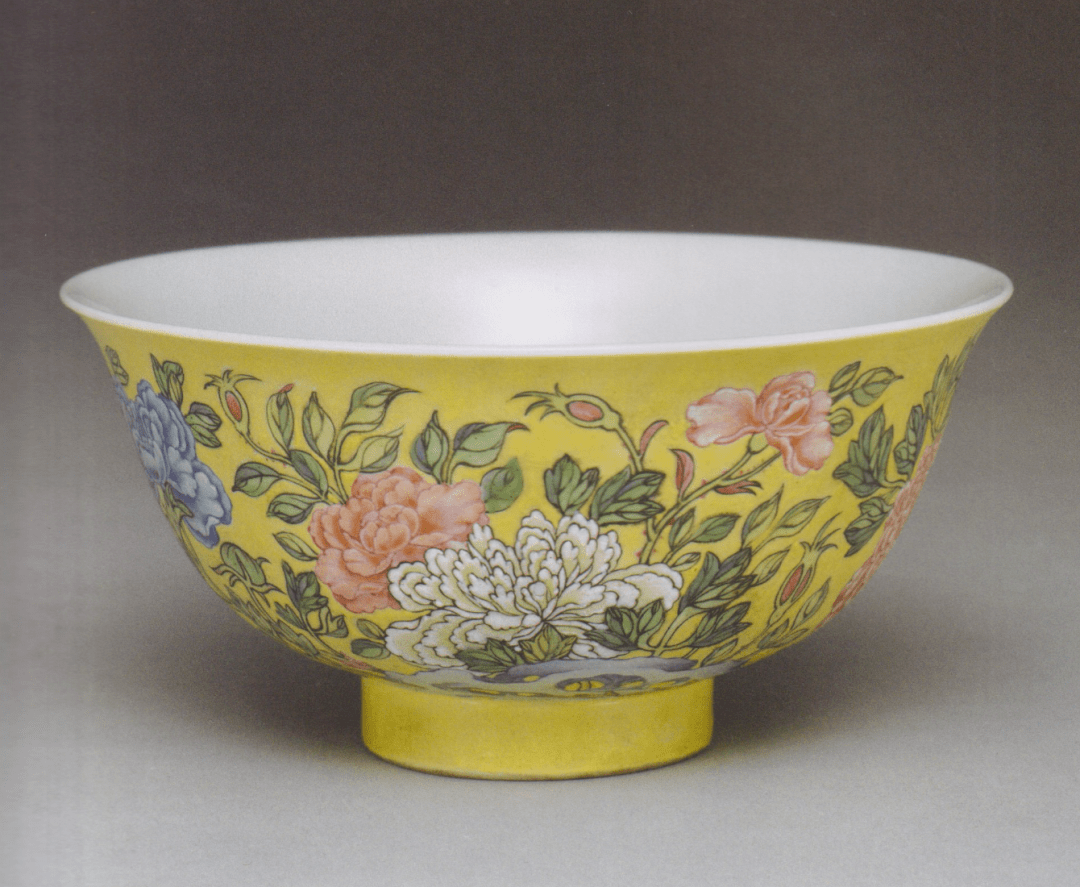 清 雍正 珐琅彩瓷黄地牡丹碗