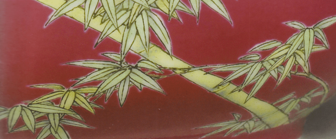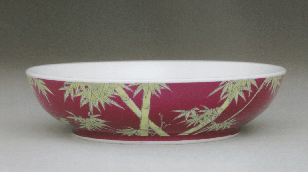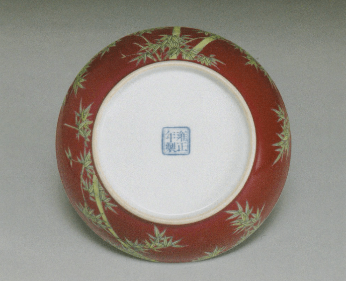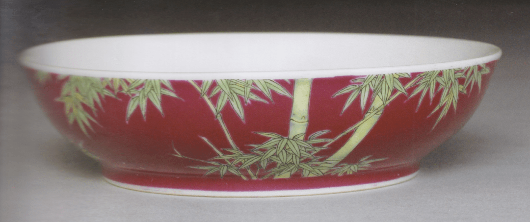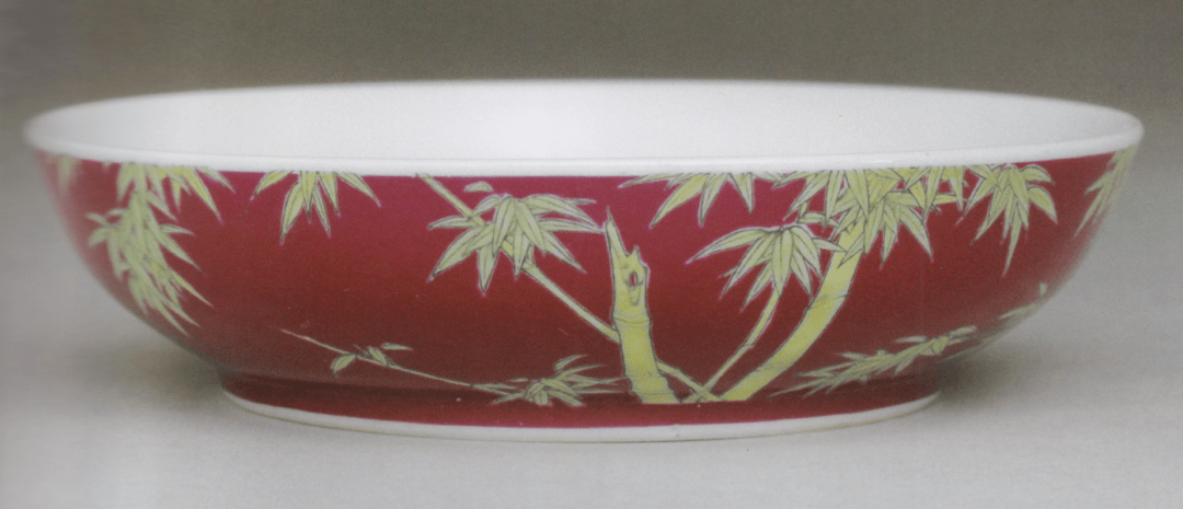 清 雍正 珐琅彩瓷红地翠竹碟一对