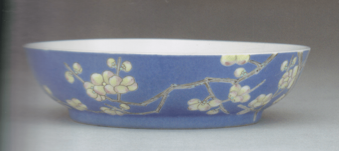 清 雍正珐琅彩瓷蓝地白梅碟一对