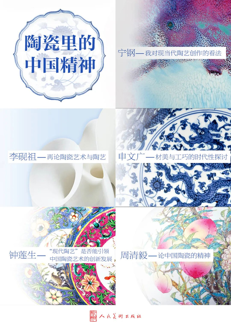基于此,人民美术出版社特别策划了“陶瓷里的中国精神”专题,邀请五位专家探讨中国陶瓷艺术的继承与发展。其中,《论中国陶瓷的精神》一文指出,研究中国陶瓷的精神首先要把握其特殊的本质,这种独特性至少表现在质地、器形、纹饰、色彩、工艺和书画六个方面的美。而一件陶瓷作品好不好,要看其是否具有中国陶瓷六美,是否有新的表现形式和技艺,是否能完整地表达中华文化的深邃含义。《积极表达民族与时代精神 正确引导艺术教育——我对现当代陶艺创作的看法》从不同角度阐述了现当代陶艺创作,认为现当代陶艺创作者要在尊重传统的基础上保持对新鲜事物的敏感度,创作具有民族特点的作品。而陶艺艺术教育者则要正确对待传统文化,树立创新意识。《再论陶瓷艺术与陶艺》中将陶瓷艺术归为行业生产,陶艺归为艺术生产,也将当代陶艺分为三大类,认为其有很大提升空间,同时指出中国传统陶瓷艺术的工艺、精神等需要被传承。《“现代陶艺”能引领中国陶瓷艺术的创新发展吗》一文从问题意识出发,提出现代陶艺在观念、审美、创新等方面存在的问题,认为中国现代陶艺应该在尊重传统的基础上进行创新。《材美与工巧的时代性探讨——关于中国当代陶瓷艺术的现状思考》探讨了当代陶瓷工艺美术大师和陶瓷艺术家的创作中分别存在的问题,认为只有两者相互借鉴,才更有利于陶瓷艺术的发展。