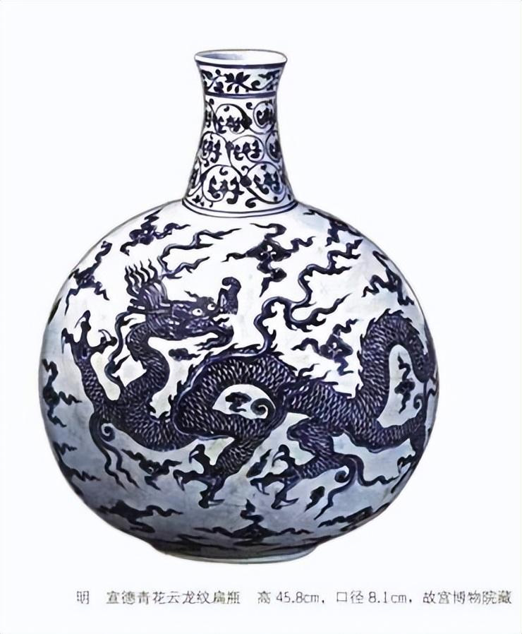 明 宣德青花云龙纹扁瓶 高 45.8cm,口径 8.1cm,故宫博物院藏随着陶瓷鉴藏活动的兴盛,瓷器的地位也得到提升,不仅当朝瓷器取法宋代名瓷,宣德时期奉敕铸造的铜炉等祭器器型,也仿宫廷所藏宋代名窑瓷器样式,后世称之为宣德炉, 又不断对其加以模仿,成为仅次于三代青铜器的铜器名品备受藏家追捧。宋瓷所构建的审美范式深深影响了明代帝王与文人士大夫,他们对于宋瓷情有独钟,明永乐以降的景德镇官窑、多仿汝、官、哥、钧、龙泉等宋代名窑瓷器以供赏鉴。明中期,古窑器鉴藏、交易在明代早期奠定的基础上不断推进。宣德至天顺年间的王佐 对曹昭《格古要论》加以增补,对各类窑器的记述更为具体。王佐祖籍江西吉水, 对位于吉安的吉州窑较为熟知,因而对其敷陈较细,在曹昭的基础上增补了器型、釉色、大小、价格等内容 ,“有白色,有紫色花瓶,大者直数两”,是已知最早的明代有关陈设瓷器价格的较为具体的记载。“数两”银是明代知名书画家单幅作品的售价,远不及与吉州窑同时期的宋元书画价格, 但相对于普通日用瓷而言其价已不菲,否则不会特意记录, 对其他器物,只以“不甚值钱”一语带过,王佐对吉州窑器的记叙较详,也反映出明中期江西文人对古窑器市场状况的熟稔。