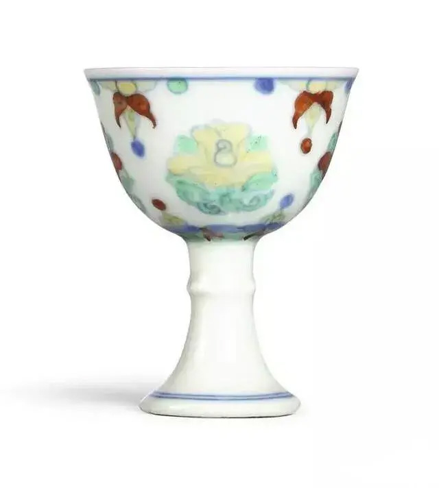 明成化 斗彩月季花高足杯《大明成化年制》款,7.7cm(图源:香港苏富比官网)成交价:13,300,000港币