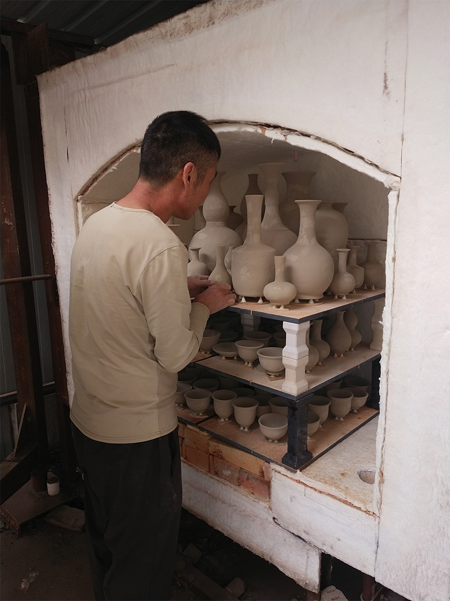 在谈到汝瓷烧制技艺时,张亚格说:“在汝瓷制作中,采用手拉坯成型,工艺比较细腻讲究,从原料、配方、成型工艺、烧制技艺等都必须按照北宋时期汝瓷古法制作,即先素烧、再釉烧,都采用满釉裹足支烧。要先从低温到高温,然后从高温再降温的过程,需要精准的温度控制。温度下降不能过快不能过慢,过快了变成豆绿色,由高温慢慢地到低温才能变成天青色。