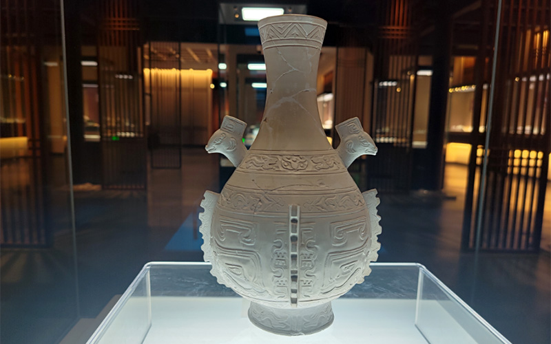 汝窑素烧仿青铜器出戟瓶,2015年在清凉寺汝官窑遗址IV区出土,时代:宋。现收藏于宝丰汝窑博物...