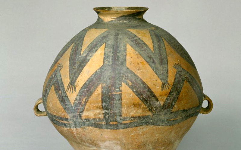 【马家窑文化彩陶蛙纹壶】 彩陶蛙纹壶,新石器时代马家窑文化马厂类型,高42厘米,口径13.1厘...