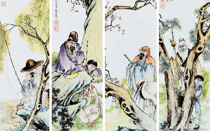 △ 康熙 五彩潘车盈果图盘(局部) 大都会艺术博物馆藏 康熙时期,瓷器绘画...