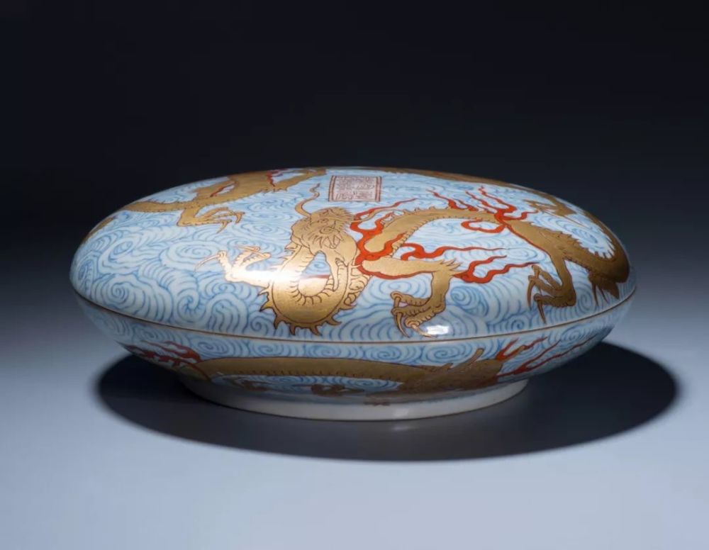 嘉庆"懋勤殿"款龙纹大印泥盒明万历五彩狻猊香熏 特展共展示了静德轩收藏的3...