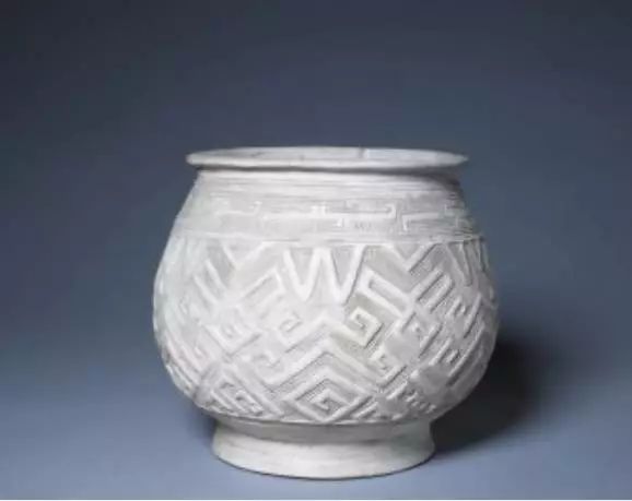 殷墟出土的白陶刻几何纹瓿 商代除烧制一般的灰陶器外,还生产一种精美的白陶...